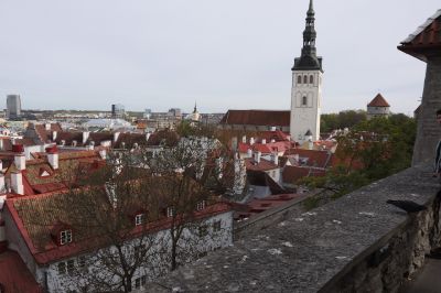 In Tallinn sind wir auf der Suche nach unserem Hotel in einer Fußgängerpassge gelandet. Marko fuhr da einfach weiter, na gut, dann haben wir da erst mal geparkt und das Hotel gesucht: Eingang bitte nächste Straße rechts und dann nochmal links, O. K. , wir haben es dann gefunden, uns angemeldet, das Zimmer bezogen und die Maschinen geholt. Nach einer kleinen Verschnaufpause haben wir dann das Touristenprogramm begonnen und wollten auch gleich mal was essen. Hier merkten wir schon den Preisunterschied zu den vorherigen Städten - hier war schon alles etwas teurer. Wir sind dann durch die Stadt gelaufen, die sehr touristisch organisiert ist, was man auch an den japanischen Gruppen bemerkt, die einen auch beim Mittagessen fotografieren und sogar filmen. Nach dem Aufstieg zur Burg wurden wir mit einem wunderschönen Ausblick auf Tallinn belohnt. Danach ging es noch in ein Lokal, das anfangs schön leer und ruhig war, bis wieder eine Gruppe Japaner kam.