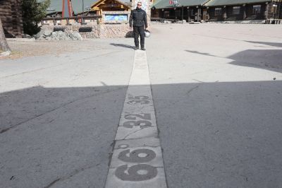 Der Weg zum nächsten Ziel, dem Weihnachtsmann, wurde durch neue Herausforderungen begleitet.Wir wurden immer wieder von starken Windböen erfasst, die jedesmal unkontrollierbar von allen Seiten kamen. Wenn man darauf vorbereitet ist und man sich darauf eingestellt hat, konnte man verhältnismäßig gut damit umgehen. Im übrigen sind jetzt die Seen ohne Eisdecke, obwohl wir dem Polarkreis näher kommen. Dann war es soweit. Der Polarkreis. Einige wenige Kilometer vor Rovaniemi sah man schon die Werbetafeln für Santa Claus. Dort wollten wir wieder einen Kaffee zum aufwärmen. Um zum Restaurant zu gelangen musste man an etlichen Verkaufsregalen mit übereinander gestapelten Rentieren, Weihnachtsmannmützen und anderem Kitsch vorbei. Marko wollte eigentlich ein Foto mit dem Weihnachtsmann am Polarkreis haben, der hatte heute aber schon Feierabend. Als wir unseren Kaffee tranken, kam der Kellner vorbei, mit dem Marko zuvor beim bezahlen des Kaffees gesprochen hatte, und erzählte uns, das dieses Jahr der kälteste Mai seit 1968 gewesen wäre. Na das ist doch mal was.