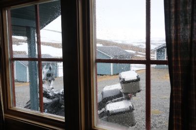 Also haben wir uns nach dem Frühstück einfach wieder auf unsere Couch gesetzt. Ich habe mir nun den Film "Zugvögel ... einmal nach Inari, den mir Marko eigentlich in Irani zeigen wollte, der aber nur auf seinem Handy lief. Sonst habenwir einfach nur mal so vor uns hingedöst, Rechnungen eingeben um die Budget zu checken oder eben das überall funktionierende WLAN genutzt, natürlich in unserer bescheidenen Hütte. Ein paar hundert Meter weiter lag ein kleiner Ort namens Skarsvåg, in dem es ein kleines Kaffee geben sollte. Damit wir mal rauskommen, beschlossen wir trotz Regen dorthin zugehen. Zum Glück hatte es trotz Pfingsten auf und es gab leckere Waffeln und Kaffee. Wir kamen hier mit Engländern und Östereichern in ein nettes und fröhliches Gespräch, die eine kleine Rundreise mit den Hurtigruten machen.